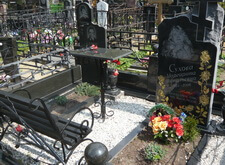 Состояние могилы после небольшого цикла работ. Покрашена лавка и ограда, обновлены розочки на ограде, помыты памятники и гранитный цоколь, убраны цветники и сорняки, почищена мраморная крошка. На могилу возложили свежие цветы.