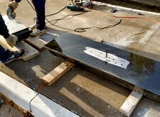Переходим к созданию надписи. Вырубаем её на граните, затем покрывает акриловой краской. Такой вариант является отличной альтернативой покрытию сусальным золотом, который, к тому же, обходится клиенту значительно дешевле.