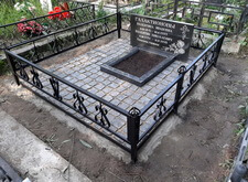 В ходе работы над данным заказом нам предстояло: переустановить покосившийся широкий памятник из чёрного гранита; покрасить обветшавшее от времени ограждение; обновить надписи на надгробье; установить прямоугольный цветник, а также выложить землю на участке гранитной брусчаткой. Приехав на место захоронения мы застали могилу в заброшенном состоянии: на всей её территории росла сорная трава, практически полностью скрывавшая памятник.
